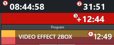 Optional: By setting the Clip visual countdown (Tools > General Settings > User Interface > Preview/Program window > Program) to a value above 5, the countdown of PACKAGE and VOICEOVER templates changes to purple to alert the user when the countdown reaches this value.