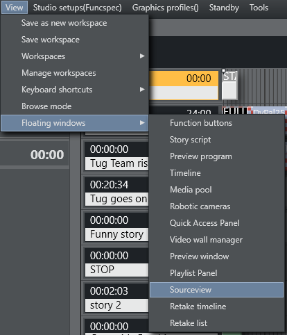 Sourceview can be used to select sources and assign them to either Program or Preview Window or to Template Router destinations.