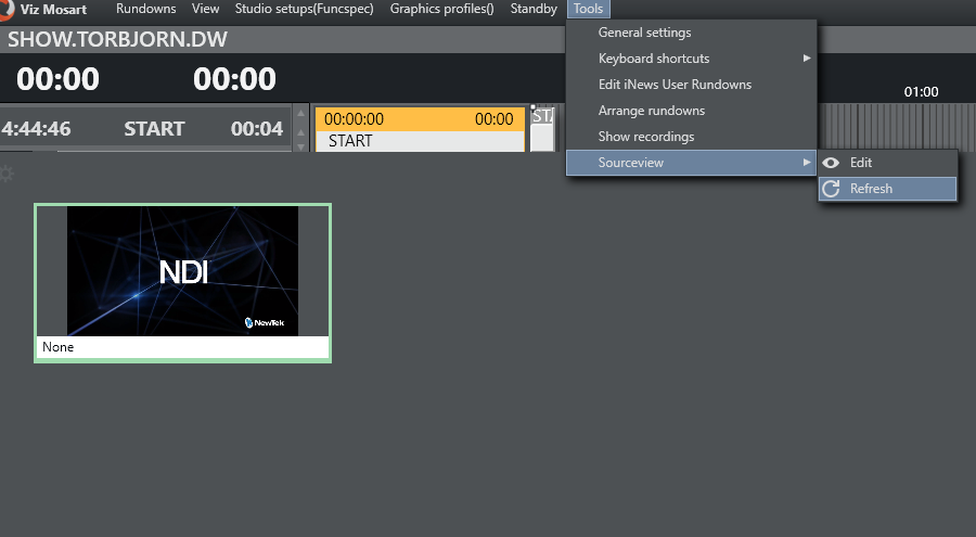 Any available NDI streams are selectable the drop-down. A Sourceview item has the same workflow without an NDI stream.