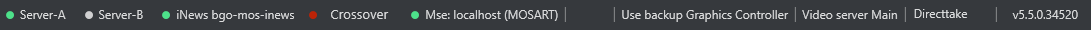 Yellow: For Mosart servers, the server is currently in idle mode (standby). This server can be activated by clicking on it. When doing so, the other (active) server is set to idle mode.