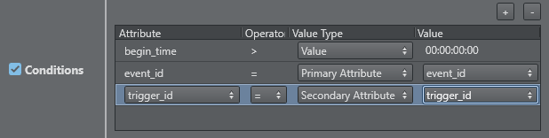 Also, setting the time is now mandatory.Conditions: Looks for the first primary event that meets the conditions in the table. Any entry prefixed with