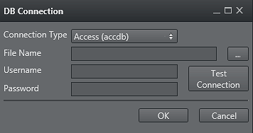 The DB Connection window is displayed. - For Connection Type, select Access (accdb) or Access (mdb).
