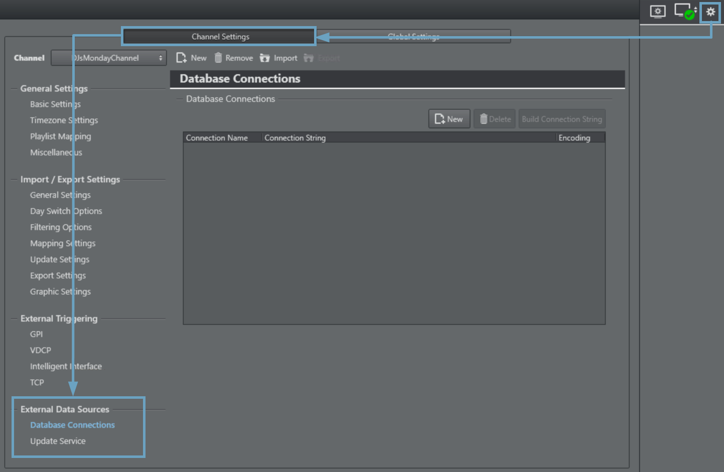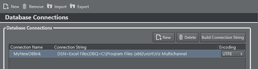 This section describes the Viz Multichannel’s database connections interface, listing all available database connections.