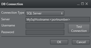 The DB Connection window is displayed. - For Connection Type, select SQL Server.