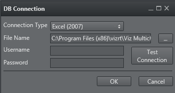 The DB Connection window is displayed. - For Connection Type, select Excel 2003 or Excel 2007.