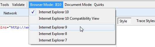 - If Internet Explorer 10 is used, press F12 and set browser mode to Internet Explorer 9.
