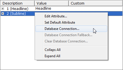 - Right-click a field and from the context menu select Database Connection or Database Connection Fallback.