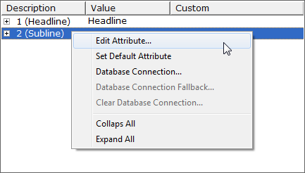 - Right-click a field and from the context menu and select Edit Attribute... This opens the Page Content Filling Dialog Menu.