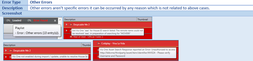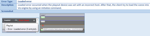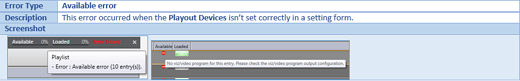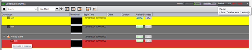 Playlist Errors in the playlist will most likely stop the playlist instantly or make the playlist work incorrectly. All indicated errors should therefore be treated as severe. The cause of the error must be investigated and corrective action must be taken to prevent the error from happening again. Errors can occur if the playlist was set incorrectly, if the elements residing in the playlist aren’t created correctly, or as a result of other circumstances. Errors are separated into six groups as shown in the list below. There is one additional error type if the MAM system Viz One is enabled: