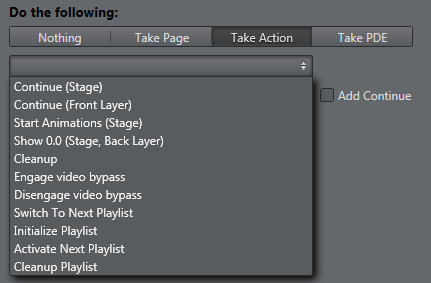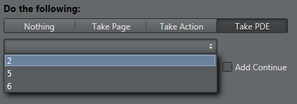- If all conditions for the rule are met, the rule will be acted upon and you can specify what should happen: do Nothing, insert a specific Page, a predefined Action or a Pilot Data Element. Clicking on the Page, Action or Pilot Data Element button will enable a dropdown list where you can select the appropriate element as shown in the screenshots below: