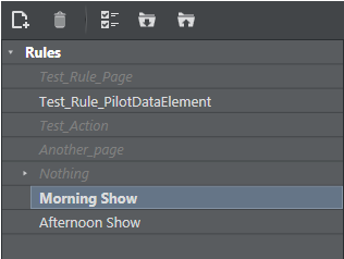 Existing rules can be activated/deactivated as required. In the example below for example the rule Another_page is deactivated while Morning_Show are activated.