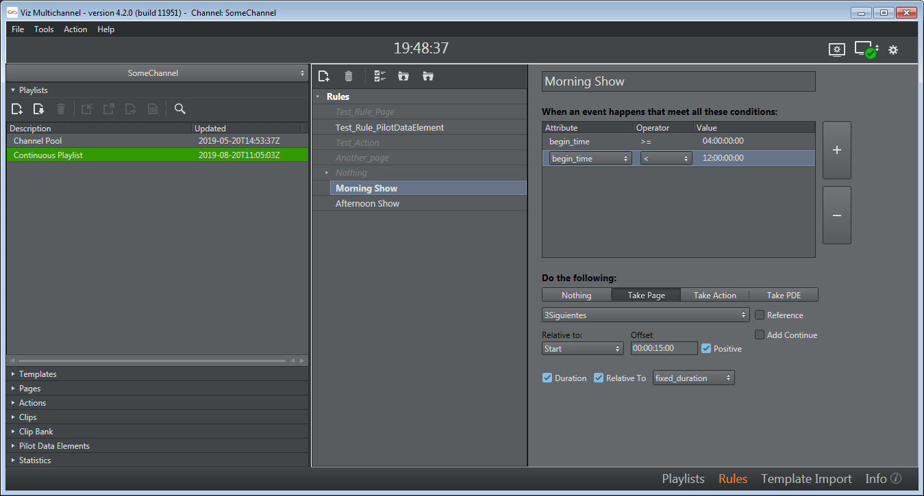 - If the rule matches it will then apply the action/page specified in the rule; if not, no action will be taken and the event will be inserted in the playlist unchanged.