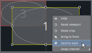 Bring to front / Send to back: Move the selected channel to the front or back. This changes the order in which items are layered, from front to back. Each channel is drawn on its own layer, which means all channels are independent and can be moved on top of, or behind, other channels.