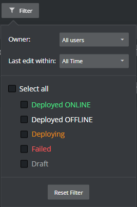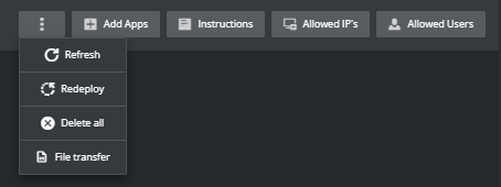 To delete all the Apps and deployed resources, select Delete All from the menu.
