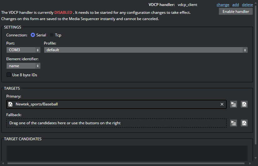 VDCP handler: This displays the currently selected VDCP handler. You can change, add or delete multiple VDCP handlers.