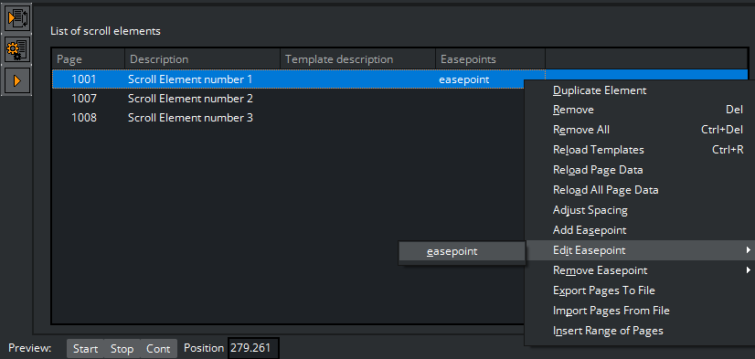 • Edit Easepoint: Opens the create new scroll editor to adjust the easepoint settings of the selected scroll element.