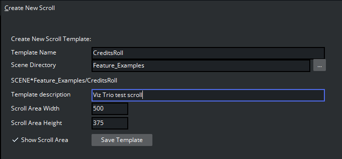 Creating a scroll allows the user in an easy way to create credit lists or any other scroll, either vertical, horizontal, with ease points and so on. When creating a scroll from scratch, Viz Trio automatically creates a scroll scene on Viz which the user can redesign.