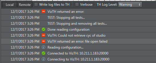 Messages are shown in the console and written to VizTH.log. From Level Fatal up to Information, the debugs are shown in the console and are written to the VizTH.log.