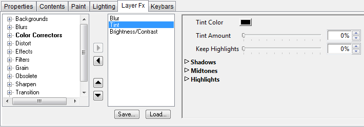 2. Click the Layer Fx tab to display the Layer Fx panel for the layer.