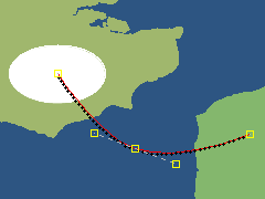 3. Hold down CTRL and drag from a point on the animation path to extend tangent handles from that point and create a curved animation path: