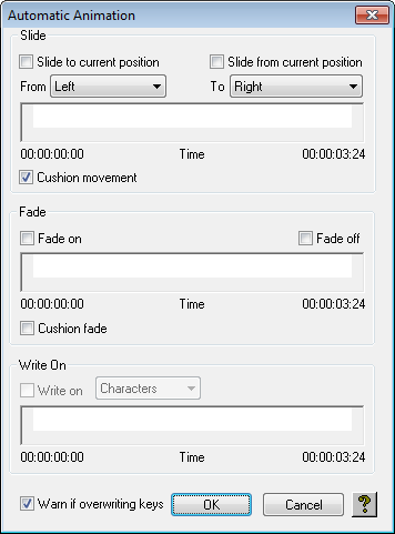 The Automatic Animation dialog box is displayed to allow you to specify how you want the layer to be animated: