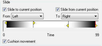 In the Slide frame select Slide to current position and/or Slide from current position and choose the direction of the slide from the From and/or To drop-down menus.
