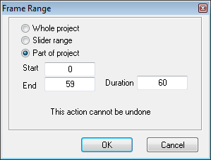 Select Part of Project, enter the range omitting the first frame, and click the OK button.