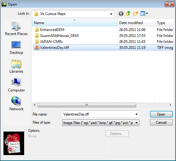 The following dialog box allows you to select an image to import, and optionally preview it.