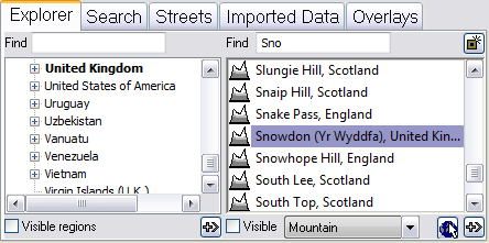 Type the first few letters of a British mountain (for example, Snowdon) in the Find box above the list.
