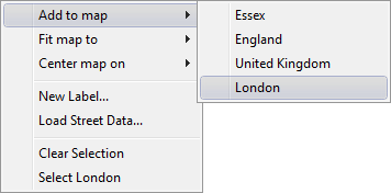 ) button. The currently selected features are labeled on the map:Click a feature with the right mouse button and point to Add to map on the pop-up menu, and click the feature: