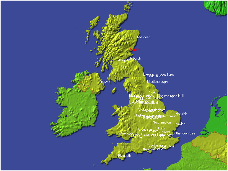 Select the type of features you want to list from the drop-down menu below the list. By default, Towns > 100k is selected, to show towns with a population greater than 100,000, but you can select from a range of alternative options.