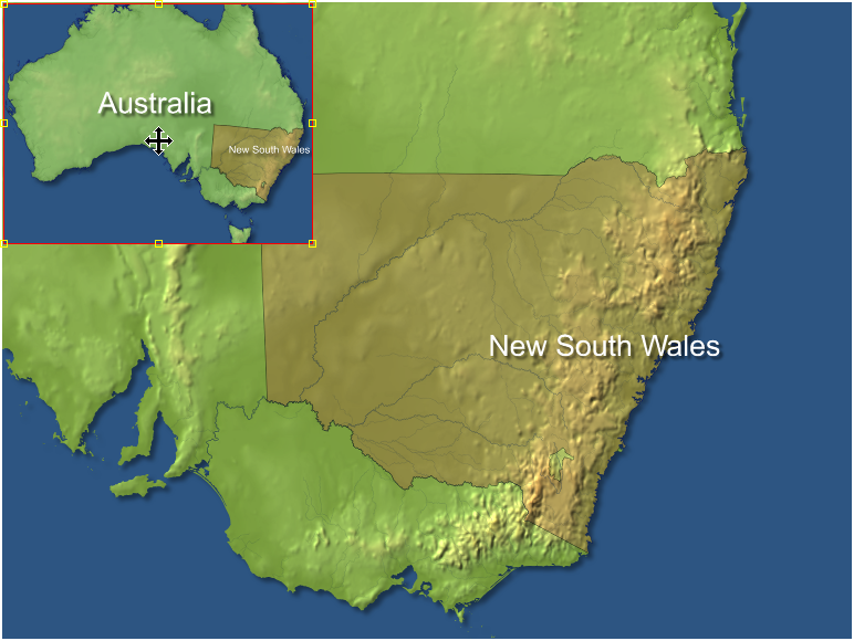 Drag anywhere within the map rectangle. The above example uses a second map layer as an inset by resizing and moving the map rectangle to a corner of the main map.