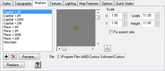 The Markers panel allows you to display and edit the available markers, and specify the scale and position of each marker.