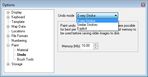 The Undo drop-down menu lets you specify the degree of undo control provided. The options are explained as follows: