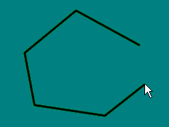 ), New Bezier ( ), or New B-Spline ( ) tool:Click at the appropriate position to draw each point. As you draw the points, the shape is shown as straight line segments (New Polygon tool), smooth Bezier curves (New Bezier tool), or B-Spline curves (New B-Spline tool) determined by the point positions: