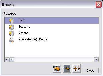 Show details: Opens the browsing tool, which displays the context information for the selected detail. The context information includes the regions containing the detail (that is country, state and county) and the capital of that country.