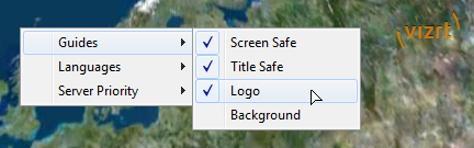 Guides: Allows you to display default guides (for example, safe and title area) or custom guides and/or images (for example, logo and background). For more information, see how To Add Custom Guides.