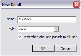 Style: Sets or modifies the graphic display representing the selected place on the map. The style selection affects the highlighting color used to mark the selected place, the label, and so on.