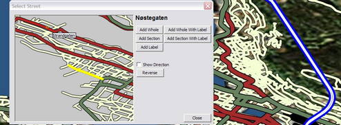 - Streets: Enables the user to select and label streets on the map. Street data must be loaded for this feature to work (see