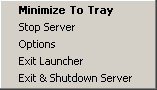 Restore / Minimize To Tray: Restores or minimizes the Server Launcher from or to tray.