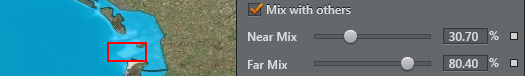 Mix with others allows you set the alpha for the mix between the base and/or contour colors and the satellite imagery. It mixes the colors based on whether you are near or far away from sea level. Meaning when you are close to sea level, it uses the near mix setting, and when far away it uses the far mix setting.