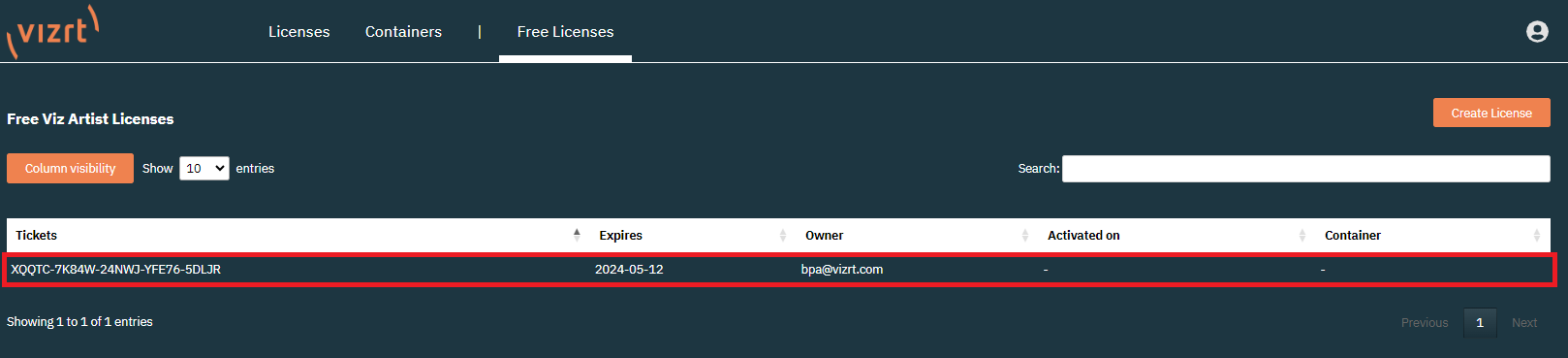 After creating a license, they are visible on the Licenses and can be activated.