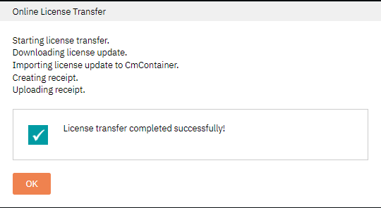 Tip: In this view it is possible to switch to the offline workflow by clicking on File-based license transfer on the lower right corner. Follow the same instructions as for the offline license activation.