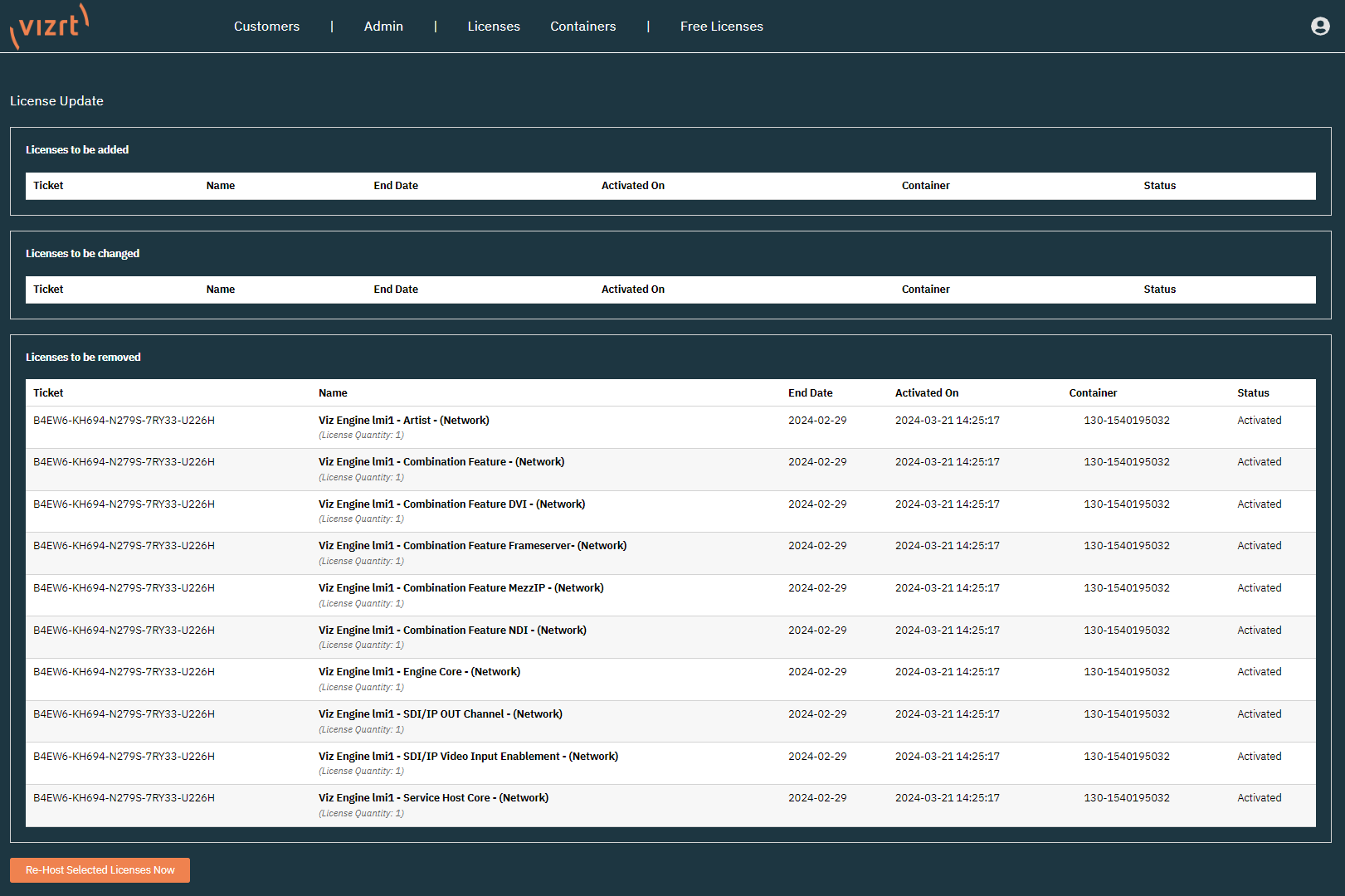 Click on Re-Host Selected Licenses Now to start the process.