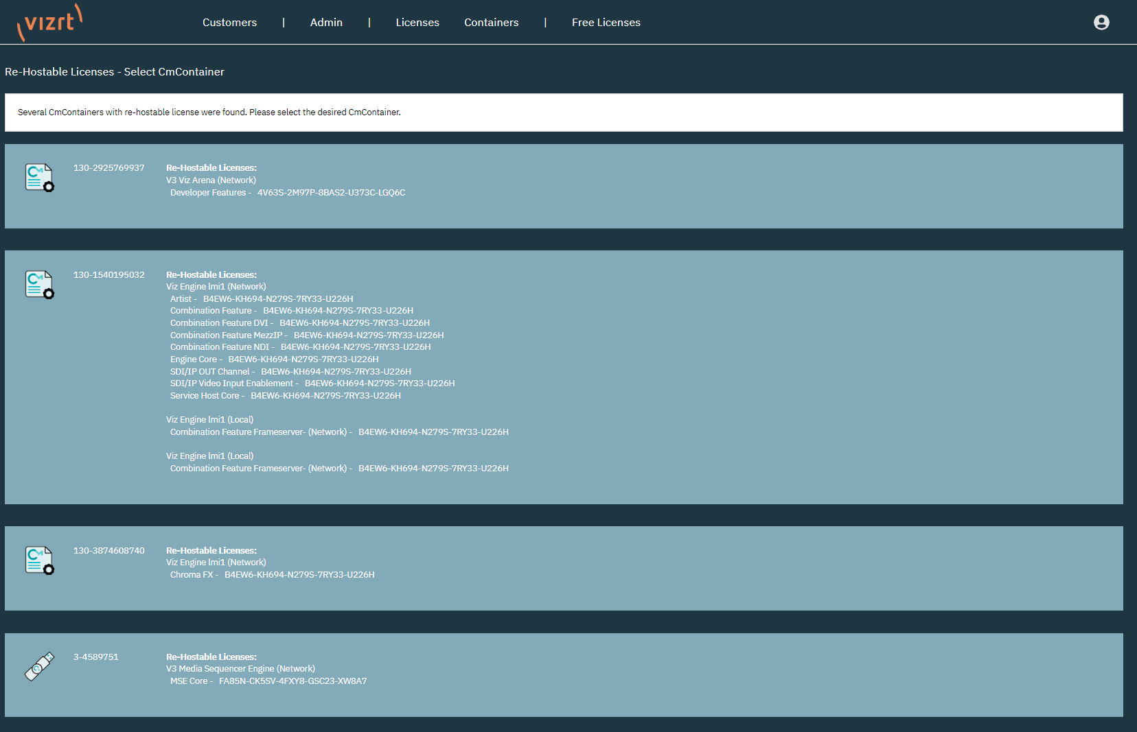 When using the offline version, the portal first redirects the interface to select the Dongle or Software Container the license should be rehosted from.